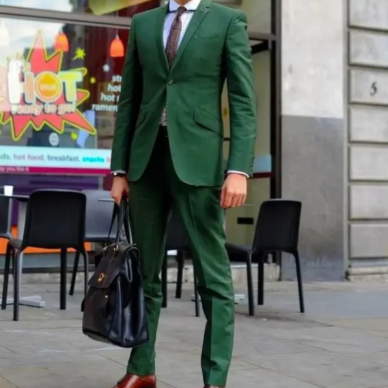 Latest Coat Pant Designs Green Casual Wedding Men Suit Slim Fit Skinny Style Suits for Men Custom Groom Blazer 2 Piece Tuxedo